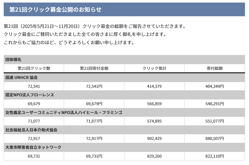 ※クリック回数は、各団体ごと1日/1回とさせていただきます。